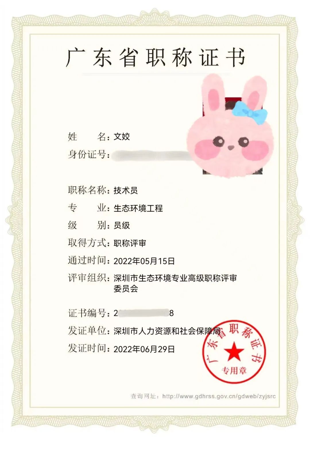 2022年6月29日,鼎深科技文姣獲得由深圳市人力資源和社會保障局頒發(fā)的“技術(shù)員職稱證書”